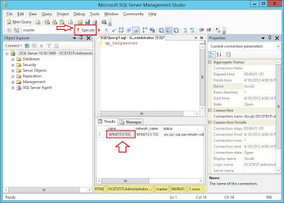 4. Then copy that name and run “SP_ Dropserver Existing Server name” command and click Execute to execute the